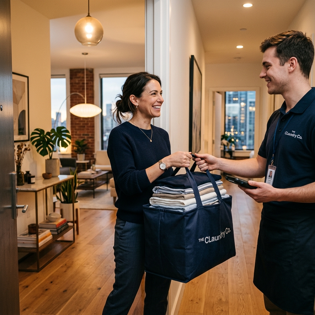 The rider delivers your beautifully cleaned and folded clothes back to your doorstep. Experience the joy of fresh laundry without the effort. Modern laundry, sorted.