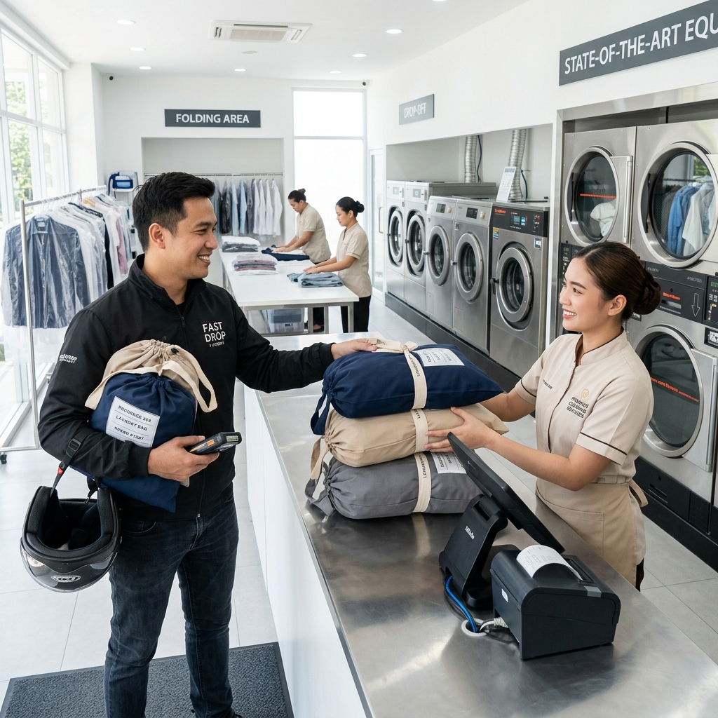 The rider delivers your beautifully cleaned and folded clothes back to your doorstep. Experience the joy of fresh laundry without the effort. Modern laundry, sorted.